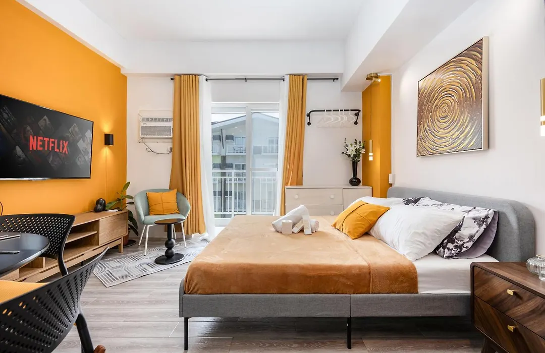 Stylish Condo Near Airport- Poolview Amani Grand Lapu-Lapu City, som har en terrass, ligger ungefär 19 minuters promenad från Europa tunnelbanestation. Lägenheten erbjuder en parkering på plats och moderna bekvämligheter som Wi-Fi.